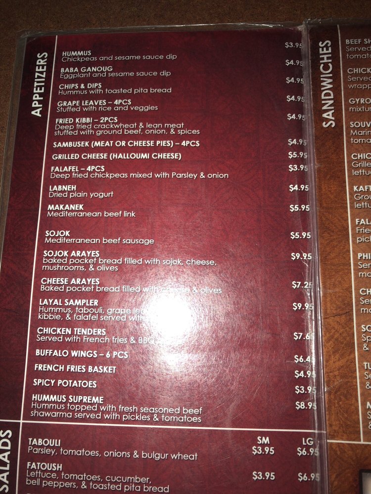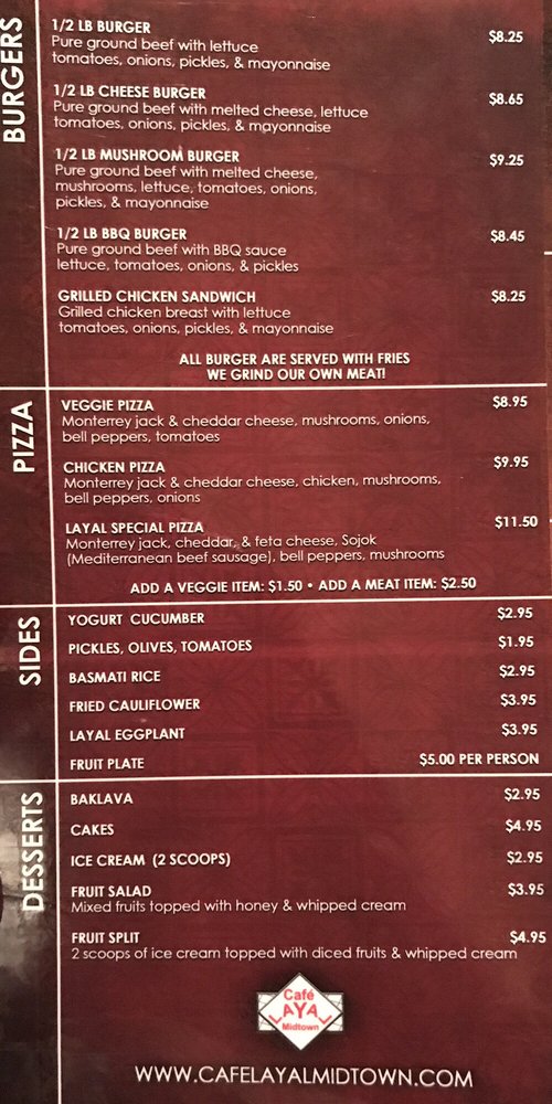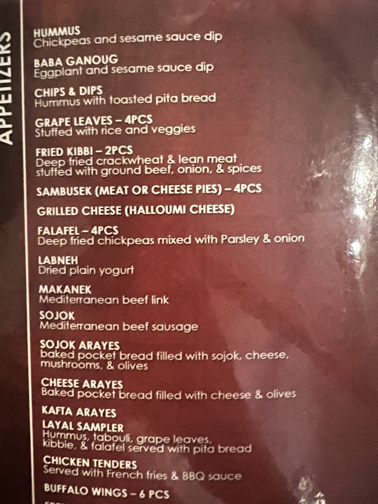 Cafe Layal Midtown Menu